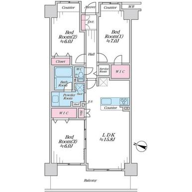 | 間取り(内訳) | 3LDK(洋7/6/6LDK15.8) | ||